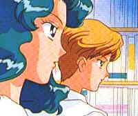 Haruka in a nice vest while Michiru hands out a hanky [7kb]