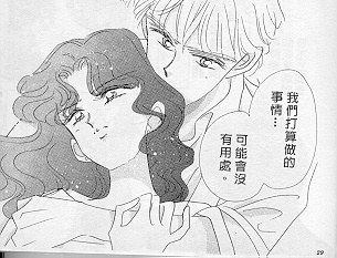 Manga Michiru leaning on Haruka's chest [87kb]