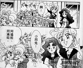 Manga Haruka and Michiru, Haruka is in a girl's uniform! [75kb]